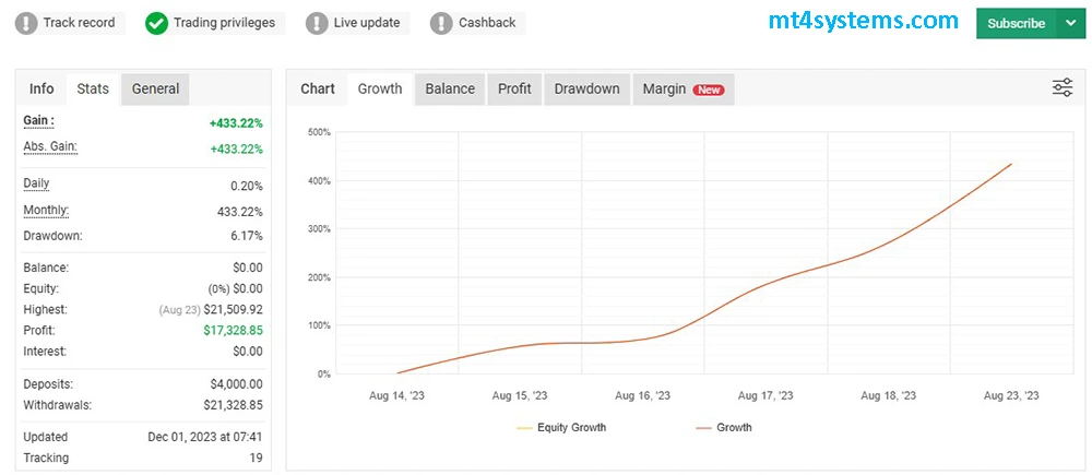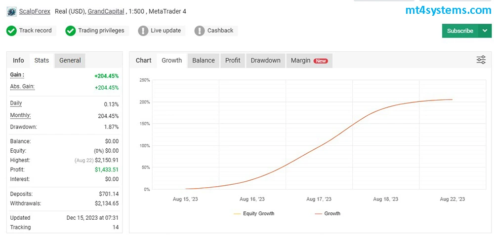 What sets this EA apart is its low drawdown, frequent high-probability entries, and smooth performance on both Gold and major forex pairs. The Myfxbook results below showcase its strengths, including steady growth, strong win rates, and reliable day-to-day profitability.