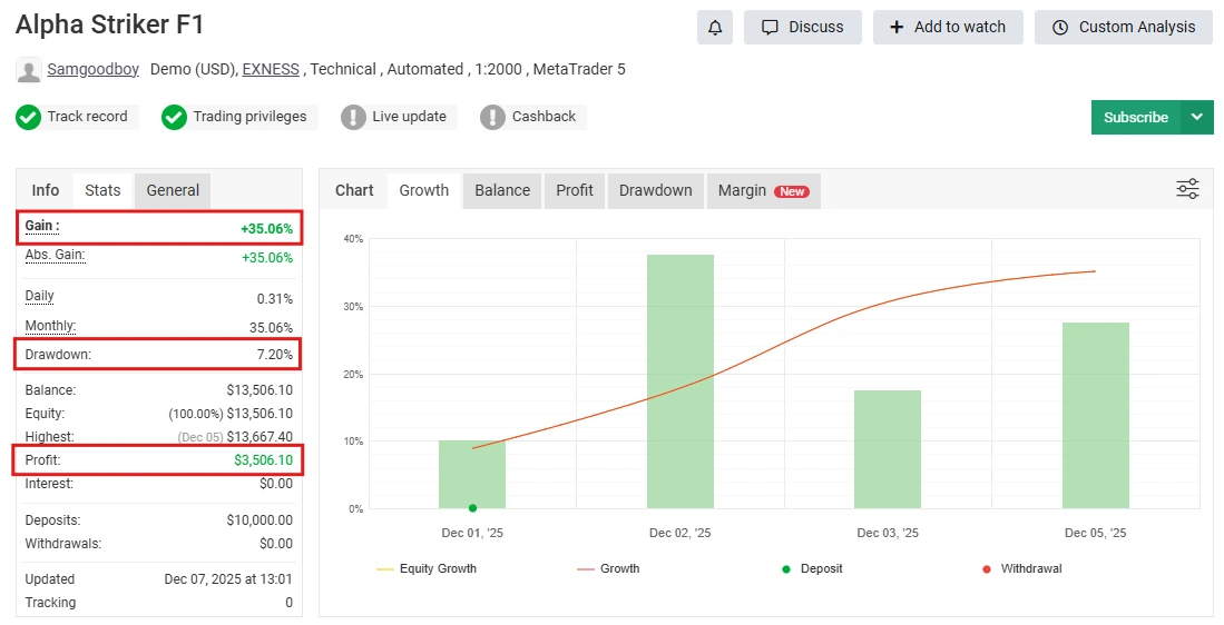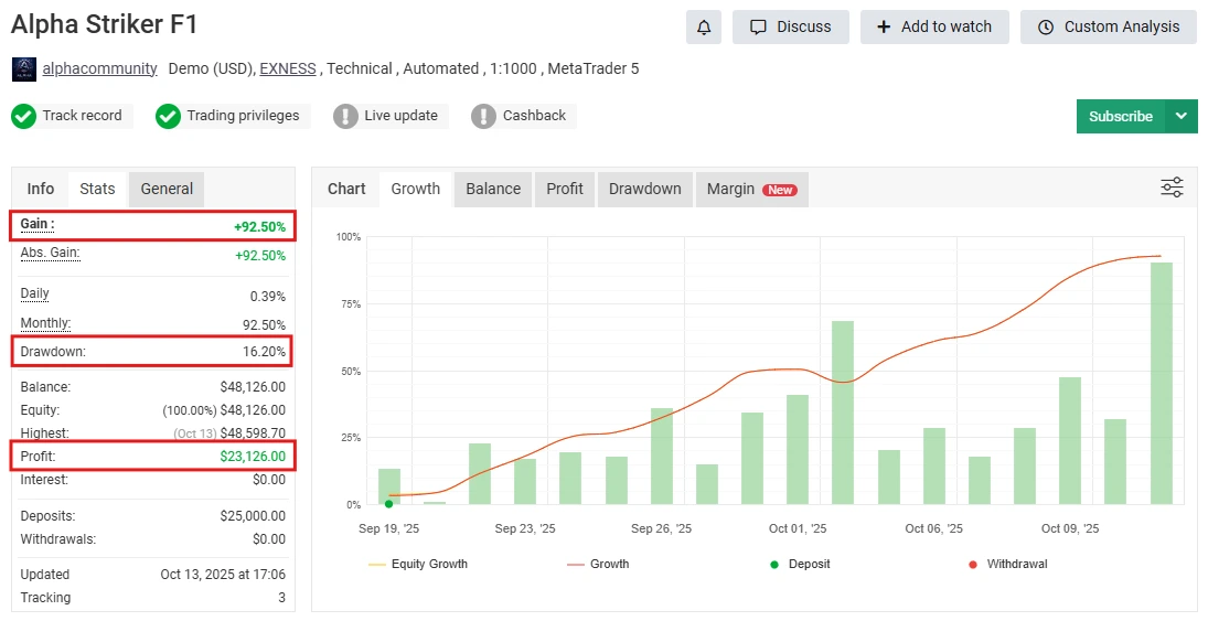👉 Alpha Striker F1 focuses on discipline and safety, unlike aggressive trading bots.