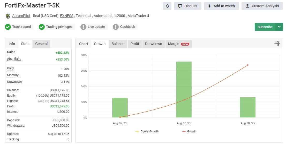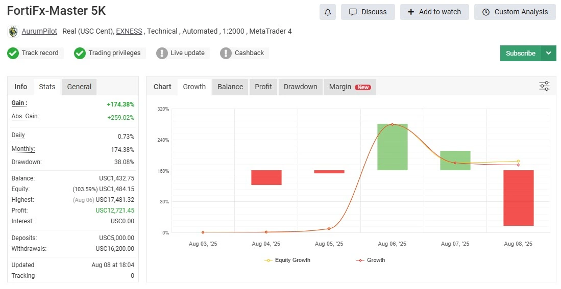 FortiFx Master CL MT4 has gained strong attention among traders for its stable execution, disciplined risk control, and consistent performance in live market conditions. The following Myfxbook-verified results provide transparent insight into how the EA performs on real trading accounts, showcasing equity growth, drawdown management, and trade accuracy over time.