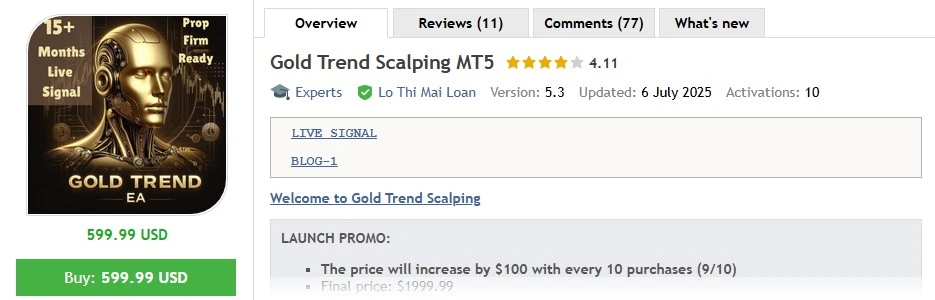 Gold Trend Scalping MT5 is a powerful, trend-aligned scalping EA that combines smart analysis with rapid execution — making it one of the better options for automated gold trading. Its focus on trend identification, adaptive risk control, and short-term profit capturing makes it both reliable for beginners and flexible enough for experienced traders.