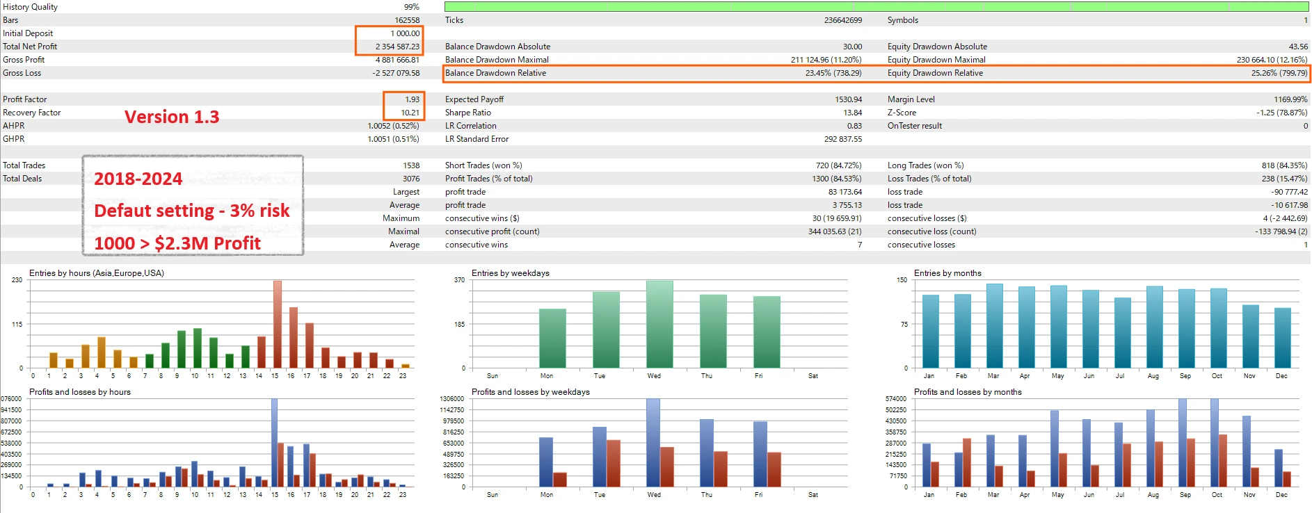 The EA is optimized to trade during high-liquidity sessions — especially London and New York — where gold volatility is most active.