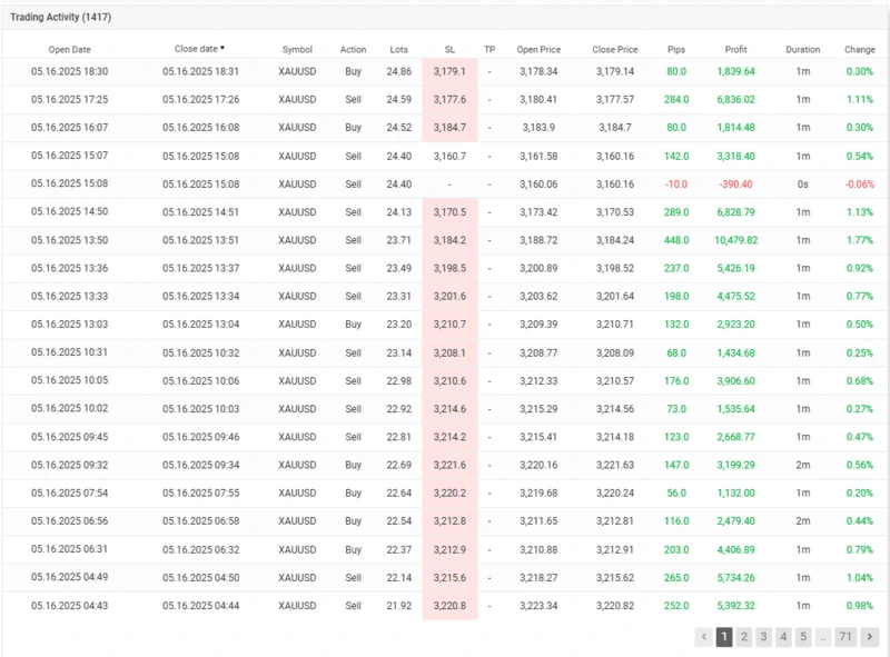 Specially tuned for gold’s volatility, spread behavior, and price spikes.