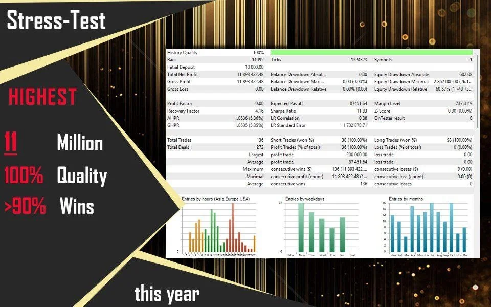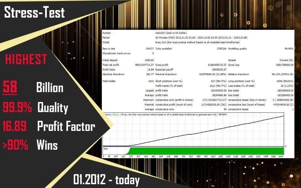 💡 In reverse testing with a $10,000 capital, the advisor demonstrated stability and safety throughout 2024 when trading the XAUUSD (Gold) pair.