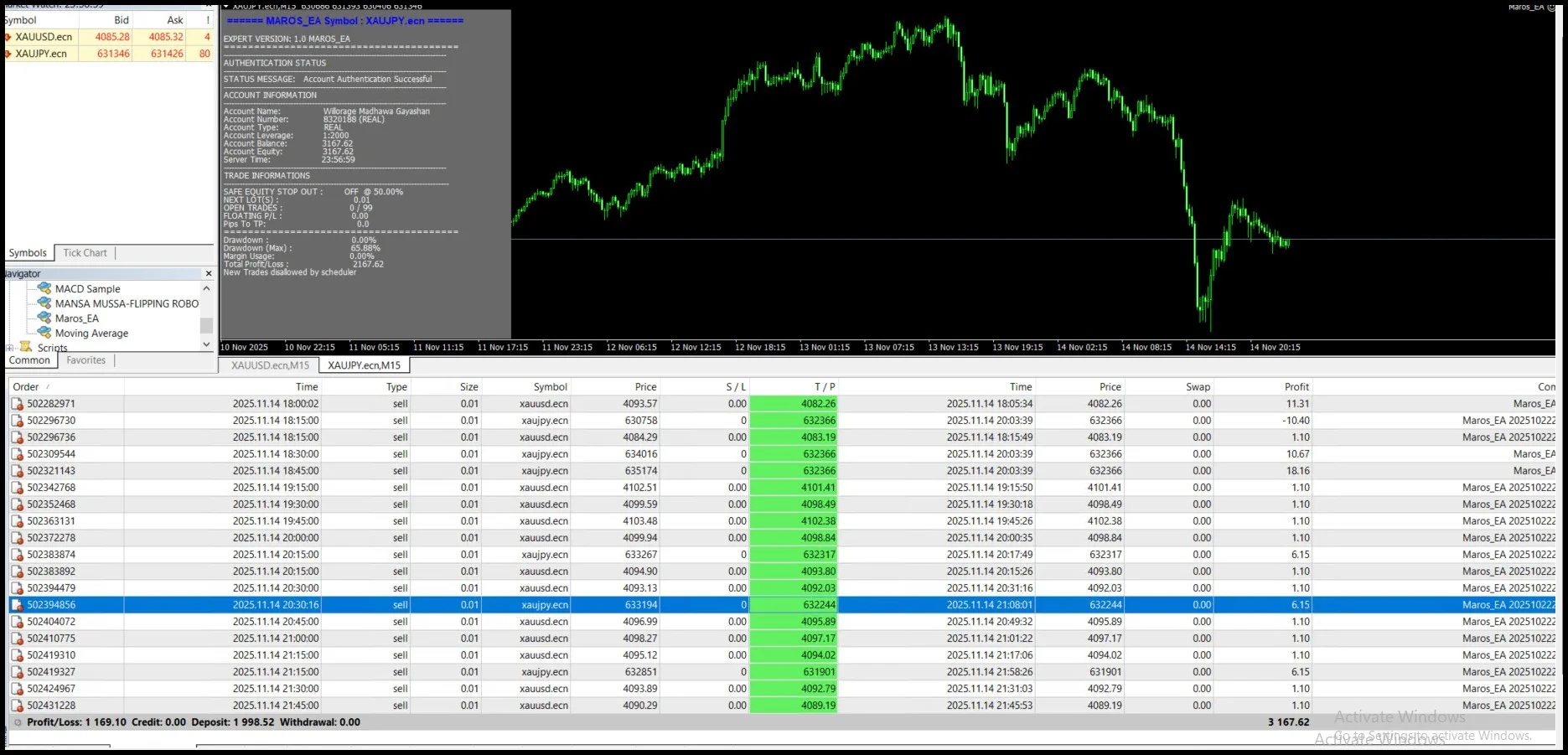 Maros EA is an advanced, fully automated Forex Expert Advisor for MT4 designed to trade Gold (XAUUSD) with high accuracy. It scans the market using volatility-based logic and smart entry filters to capture short-term movements while keeping risk under control.