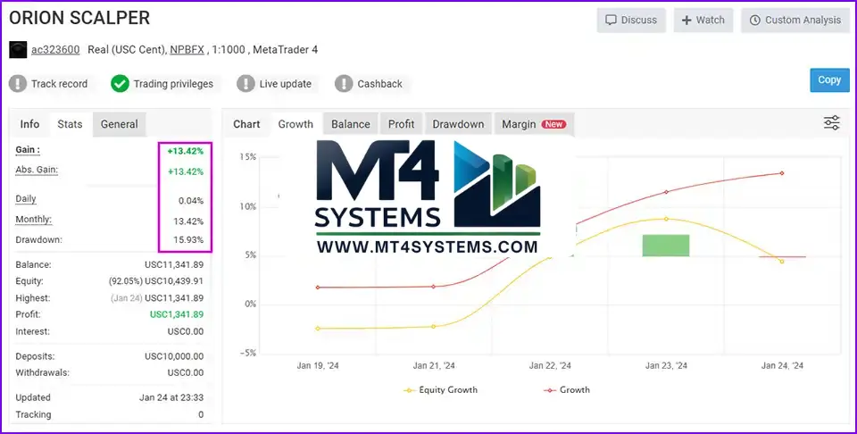 While specific performance metrics can vary based on market conditions and broker execution, the Orion Gold Scalper EA has demonstrated the potential to generate significant returns. For instance, with an initial investment of $100, it has been reported to yield up to $468 in profit within an hour during volatile market conditions.
