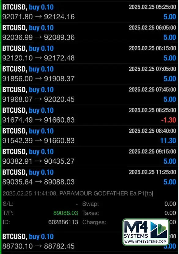 I got the PARAMOUR Godfather EA MT4 from mt4systems, and it’s been a powerful addition to my trading strategy. The EA delivers strong performance with a well-rounded approach to risk management and consistent profits. It’s simple to install and runs smoothly. Highly recommend for traders seeking reliability and profit!