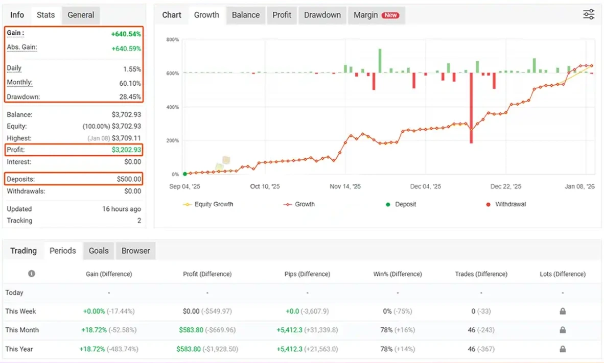 The performance of Patriot EA MT4 is tracked through Myfxbook, one of the most trusted third-party Forex account verification platforms.