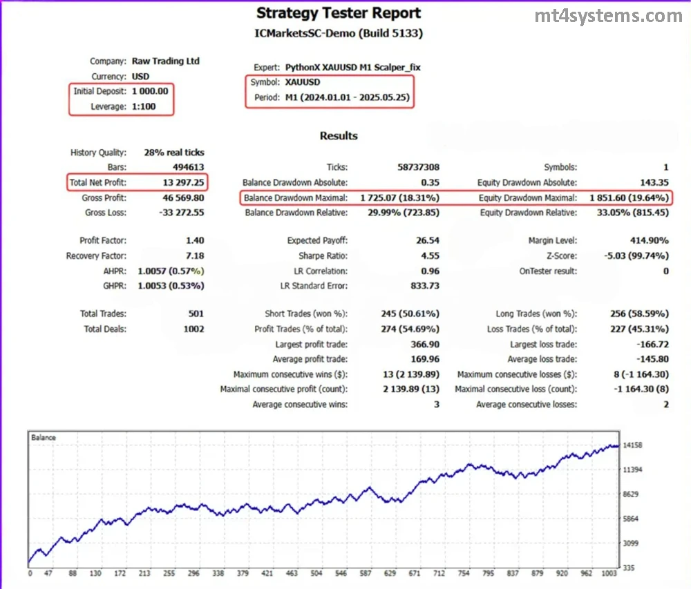 ⚙️ Key Features of PythonX M1 Scalper EA MT5_5120