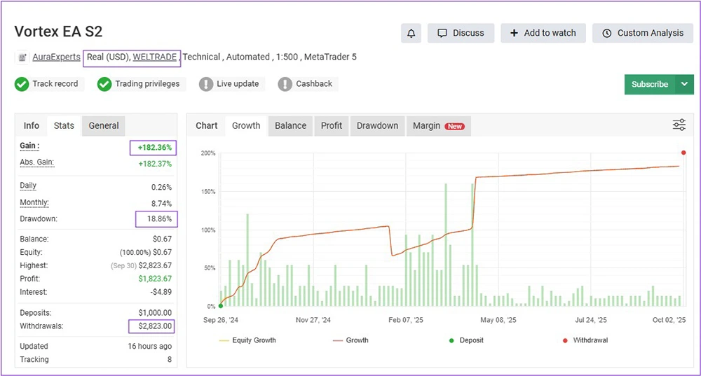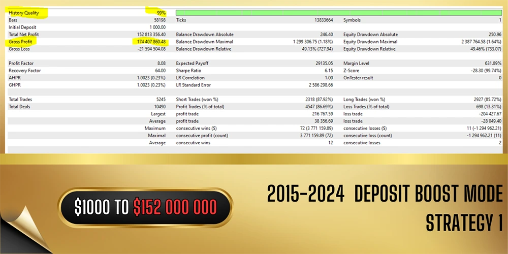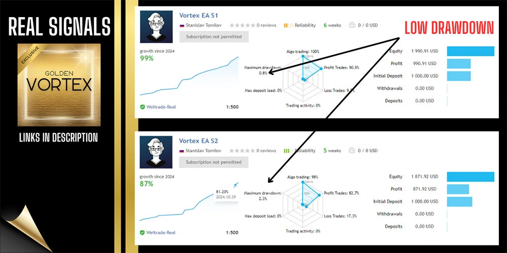Backtesting and live testing confirm Vortex Gold MT4’s exceptional performance on Gold trading.