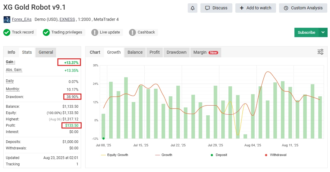 (Results may vary depending on broker, VPS quality, spread, and risk settings.)